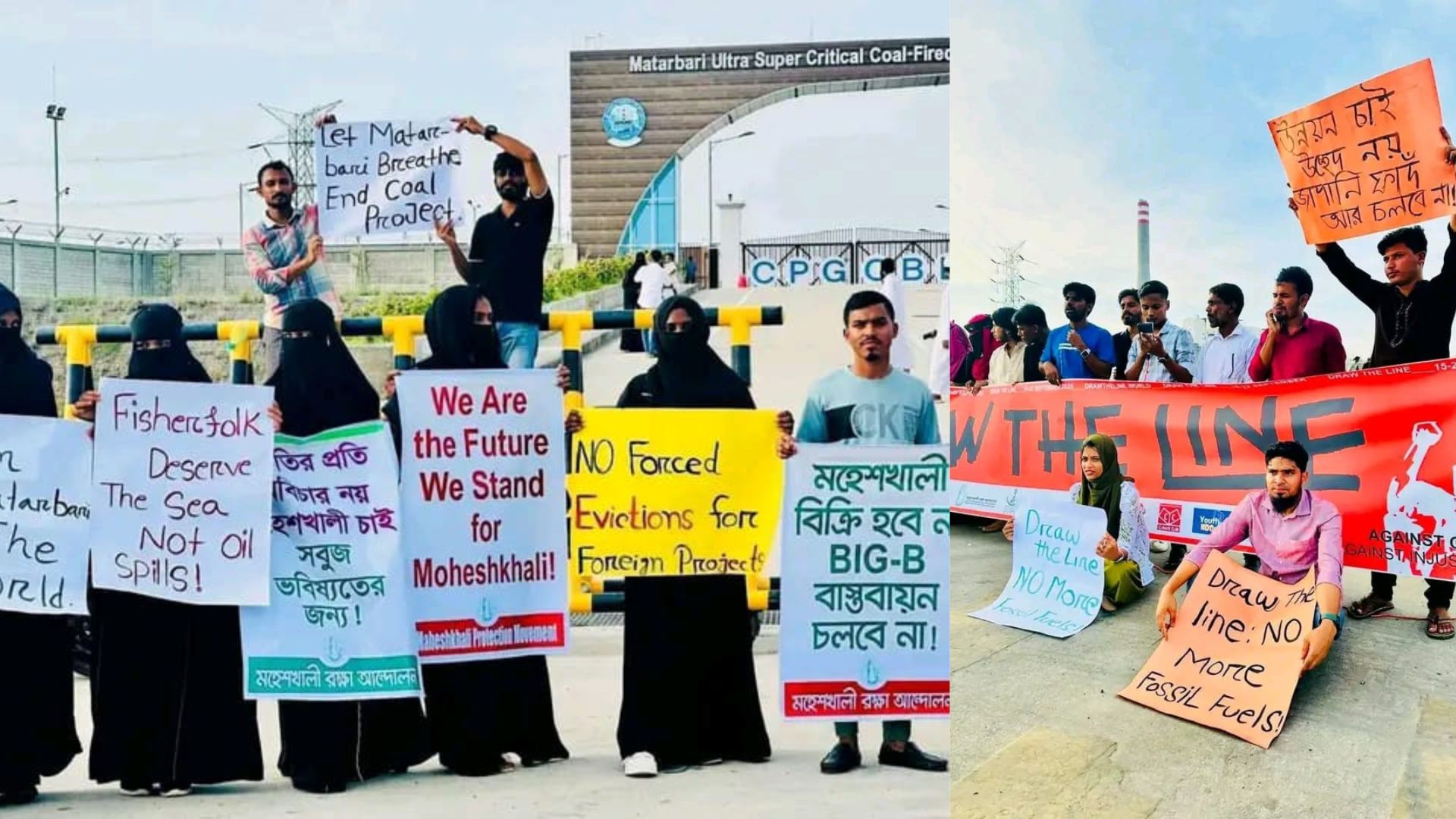 মহেশখালীতে ভূমি অধিকার রক্ষায় মাতারবাড়ী প্রকল্প গেটে স্থানীয়দের মানববন্ধন