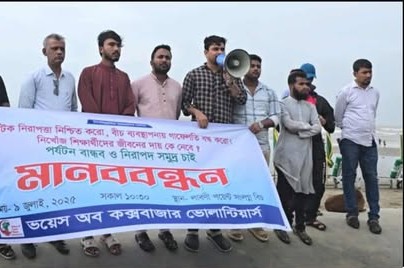 আজ কক্সবাজার লাবনী পয়েন্ট ভয়েস অব ভোলান্টিয়ার্স কক্সবাজার এর আয়োজনে নিরাপত্তাহীন সমুদ্র, বীচ ম্যানেজমেন্টর কমিটি বন্ধের দাবিতে মানববন্ধন অনুষ্ঠিত হয় এই সময় বক্তৃতারা বলেন কক্সবাজার...