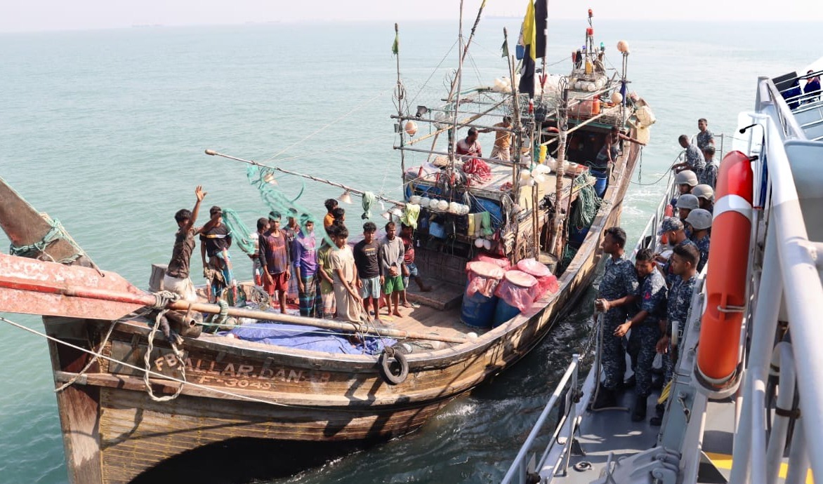 বঙ্গোপসাগরে ১২ কোটি টাকার অবৈধ জাল ও মাছসহ ১১টি নৌকা আটক বাংলাদেশ নৌবাহিনীর